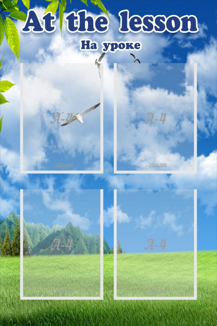 Удобный стенд с информацией. На нем есть четыре удобных кармашка формата А4, в которые можно поместить любую информацию для учеников, касающуюся урока или классных дел: домашнее задание, материал, который прошли или будут проходить на уроке, информацию о подготовке контрольной работе и многое другое, что сможет заинтересовать детей. Спокойный фон не будет отвлекать внимание учеников от уроков. Такой стенд впишется в дизайн любого класса и придется по нраву любому ученику. Хорошее качество стенда гарантирует, что такой стенд прослужит долгое время, сохраняя свой первоначальный вид.