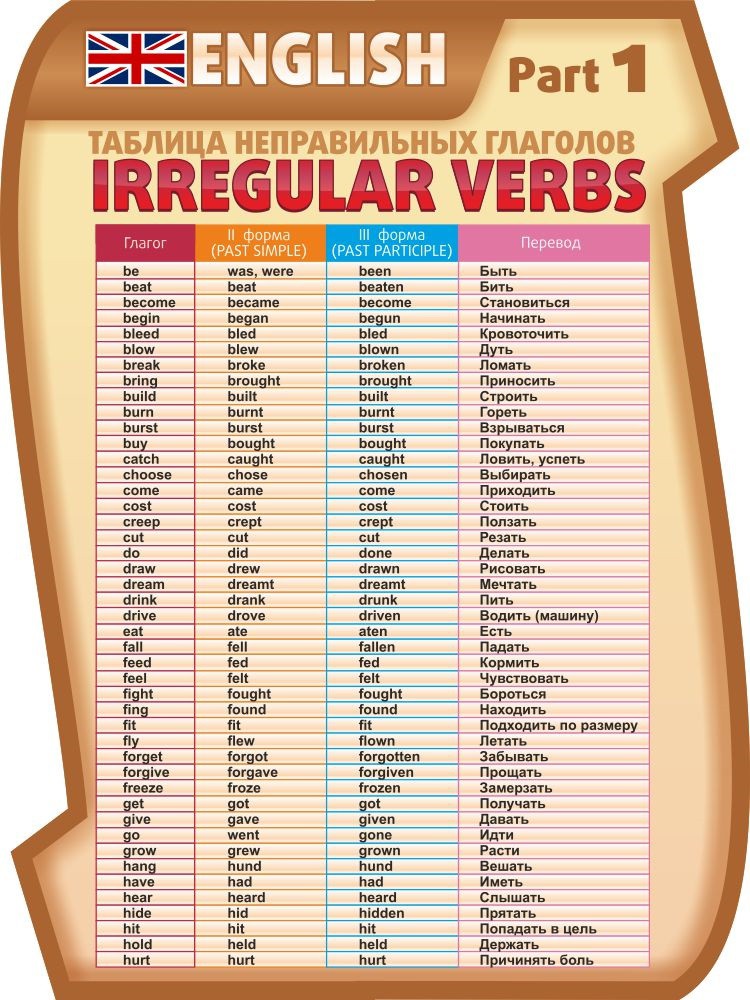 Стенд "Таблица неправильных глаголов, часть 1"
