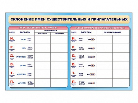 Фрагмент (демонстрационный) маркерный (двухсторонний) "Склонение имен существительных и прилагательных" - fgospostavki.ru - Тихорецк