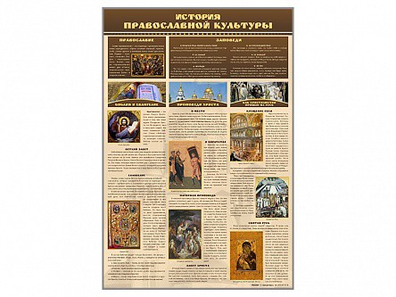 Стенд представляет собой панель, на которой размещена информация по предмету "основы религиозных культур и светской этики". Стенд предназначен для наглядного отображения информации об истории православной культуры.