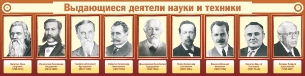 Каждому мальчику нужно уметь делать мужскую работу, что обязательно пригодится в будущей жизни. Стенд «Выдающиеся деятели науки и техники» предназначен для учеников, интересующихся наукой, техникой и другими видами деятельности. Здесь изображены девять фотографий самых известных и выдающихся деятелей, которые посвятили свою жизнь науке и технике и приняли участие в ее развитии, знать о которых должен каждый ученик образовательных учреждений. Преподавателю следует расположить такой стенд в кабинете труда, чтобы мотивировать школьников к учебе и стремлению быть всегда лучше.