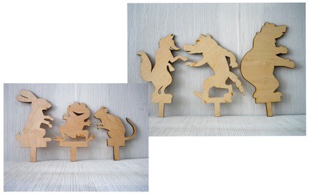 Перед вами – теневой театр «Теремок», в который входят следующие персонажи: заяц, лягушка, мышка, лиса, волк, медведь.