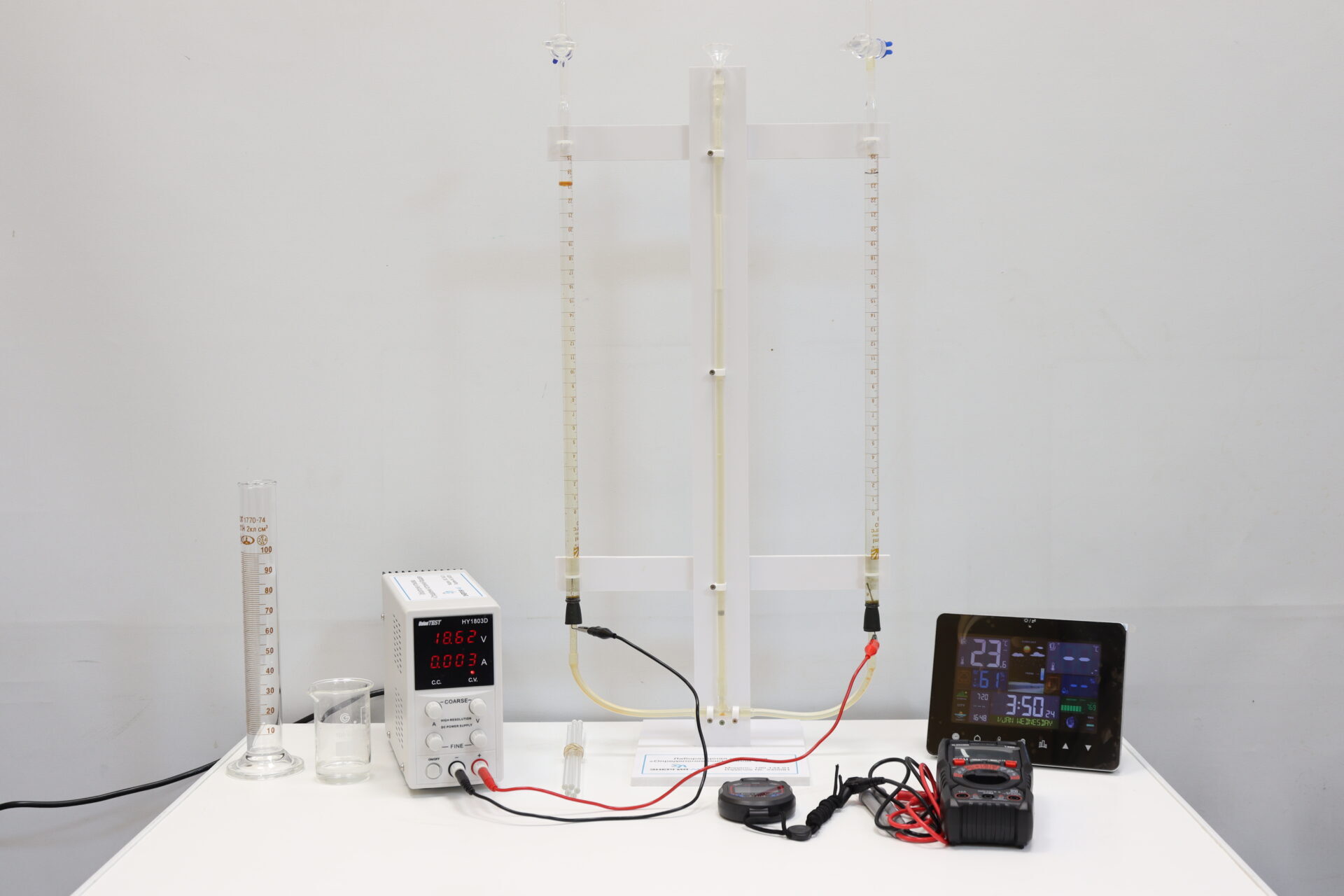 Установка предназначена для расчета постоянной Фарадея по результатам электролиза водных растворов в рамках практических работ, проводимых в среднем и высшем учебном заведении.
