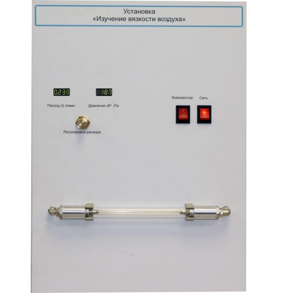 Лабораторная установка «Изучение вязкости воздуха» предназначена для проведения лабораторной работы по курсу «Физика» раздел «Молекулярная физика и термодинамика» в высших учебных заведениях.