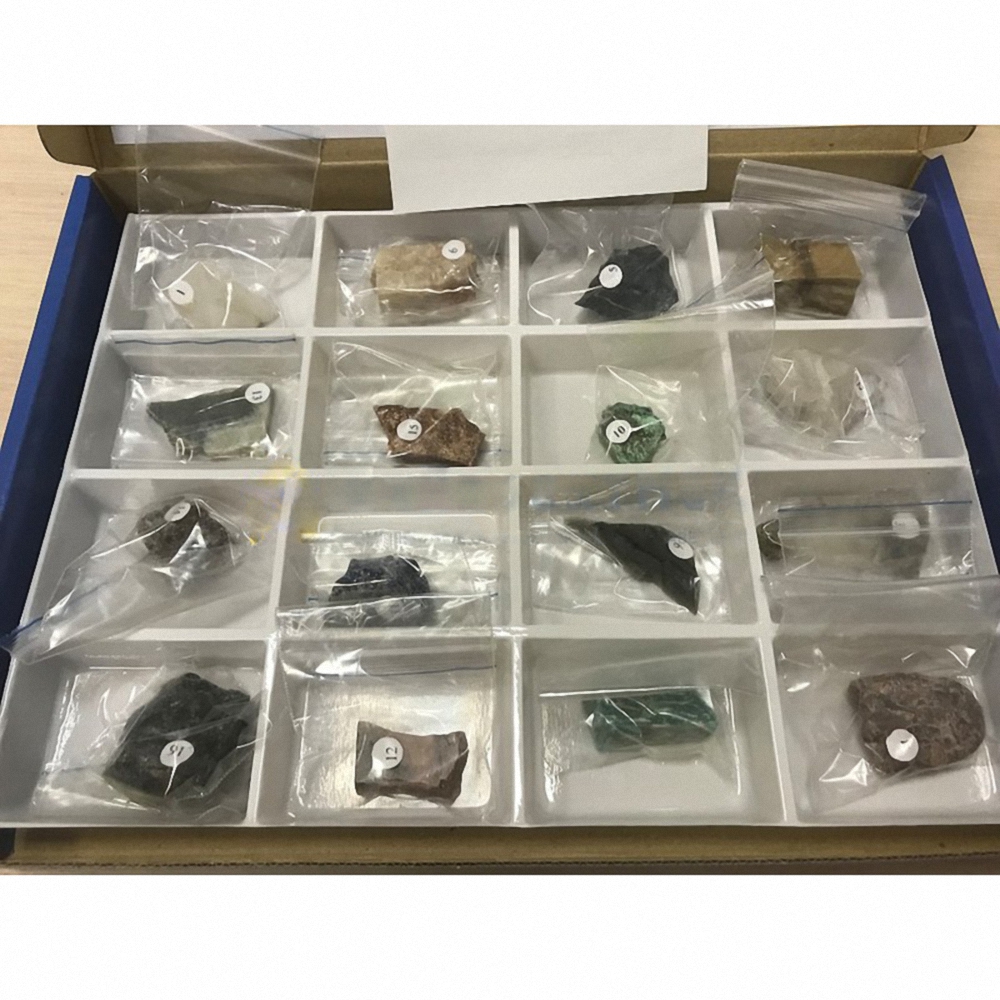 Коллекция «Поделочные камни» (полированные) предназначена для использования в качестве демонстрационного пособия на занятиях по географии, химии, естествознанию, в кружковой работе с учащимися. В коллекции представлены мелкие полированные образцы поделочных камней, при помощи которых можно рассмотреть характерные особенности каждого камня и понять, почему тот ценен для поделок и ювелирного дела. Образцы упакованы в полиэтиленовые пакеты и уложены в ложементы упаковочной коробки.