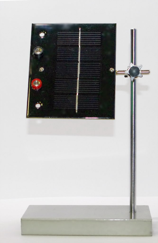 Модель фотоэлемента позволяет продемонстрировать учащимся прямое преобразование энергии солнечного излучения в электрическую. Подсоедините вольтметр к клеммам фотоэлемента и направьте его в сторону яркого света. Стрелка вольтметра отклонится.