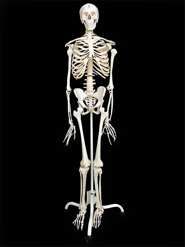 Модель является разборной (можно снимать конечности скелета и крышку черепа). В состав модели включены следующие части: череп, скелет туловища, верхние конечности, нижние конечности