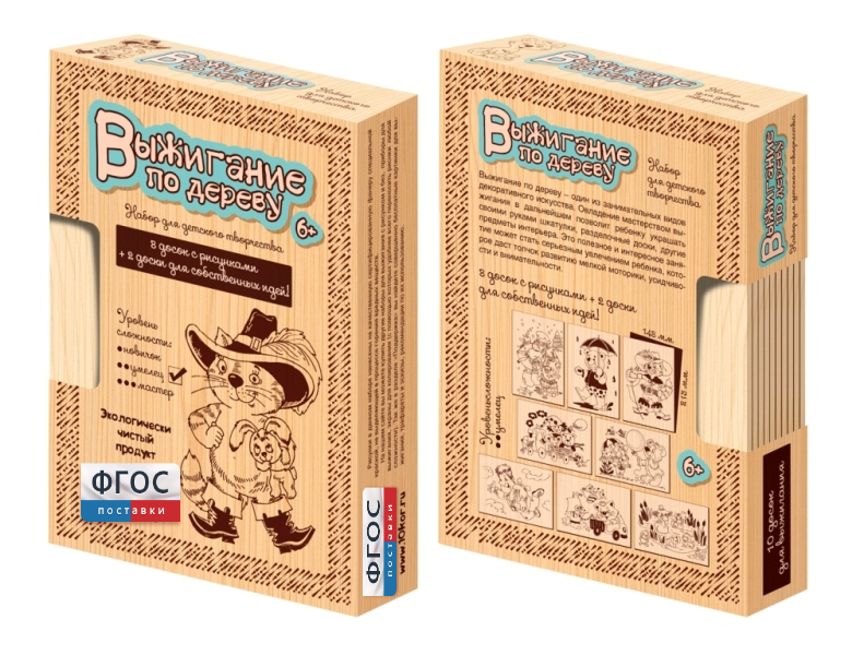 На восьми дощечках нанесены с одной стороны рисунки. Нанесены специальной немецкой краской, не выделяющей при нагревании (горении) вредных веществ. Две доски пустые, без рисунка.