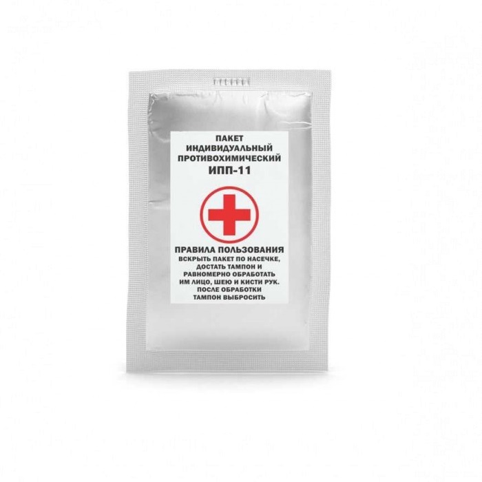 ИПП-11 предназначен для обработки поражений кожных покровов капельно-жидкими отравляющими и химически опасными веществами через открытые участки кожи, а также для нейтрализации этих веществ на коже и одежде человека, СИЗОД и инструментах в интервале температур от +50оС до -20оС. При заблаговременном нанесении на кожу защитный эффект сохраняется в течение 24 часов. Форма выпуска - герметичные пакеты, содержащие тампон из нетканого материала, пропитанный средством. На одну обработку открытых участков кожи используется один пакет.