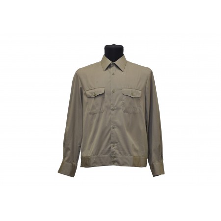 Летняя военная рубашка с длинными рукавами на пуговицах расцветки хаки. Имеет плотный гладкий воротник и два накладных кармана на лицевой стороне. Пористый материал отлично проветривается и способствует отводу тепла. Предназначена для ношения навыпуск, не заправляется в брюки. На плечах сделаны шлевки для размещения погон.